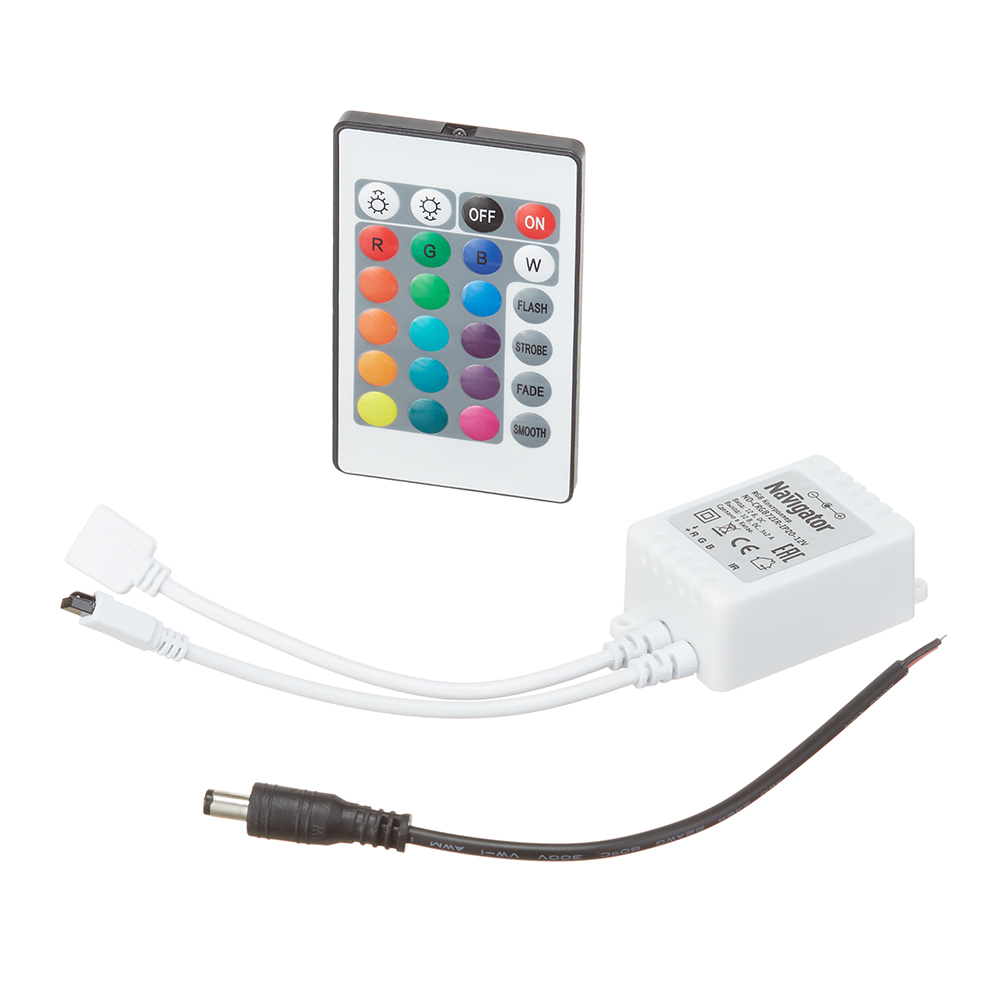 Главная / Каталог / Электрика / Освещение / Светодиодная лента и комплектующие / Контроллеры и диммеры / Контроллер для светодиодной ленты RGB Navigator (71476) 72 Вт 12 В с пультом