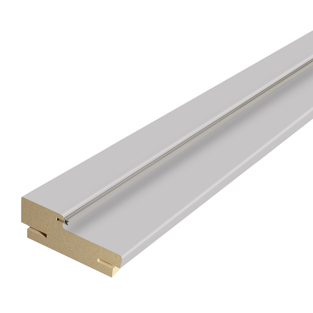 Подходит для всех типоразмеров дверей. Верхняя перекладина подпиливается по требуемой ширине для выбранного дверного полотна. Телескопическая конструкция облегчает установку доборной планки и наличника.