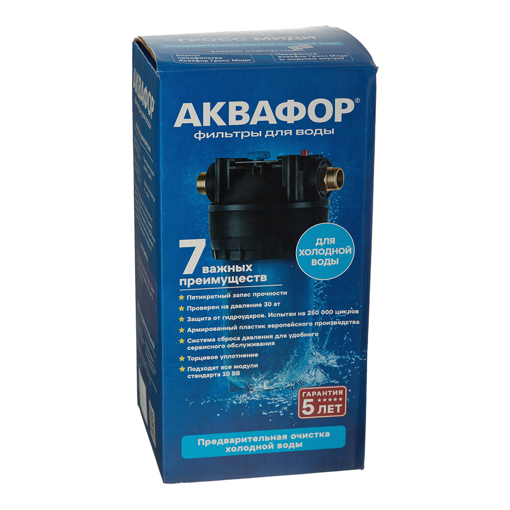 Корпус фильтра Аквафор Гросс 10 для холодной воды 10BB 1 НР(ш) х 1 НР(ш) синий