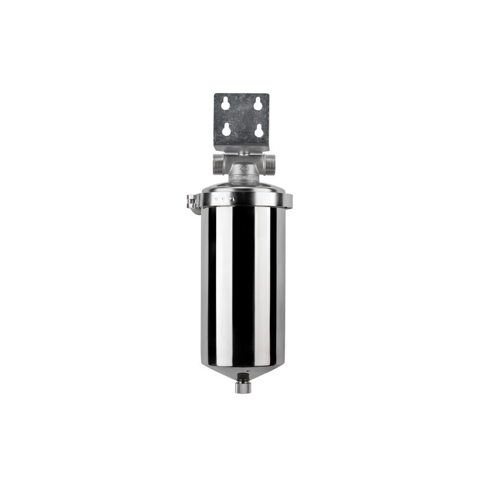 Он легко подключается к магистрали и легко обслуживается. Хомутовое крепление крышки позволяет легко извлечь картридж без использования дополнительных ключей. Также для замены картриджа предусмотрено удобное отверстие для слива воды.