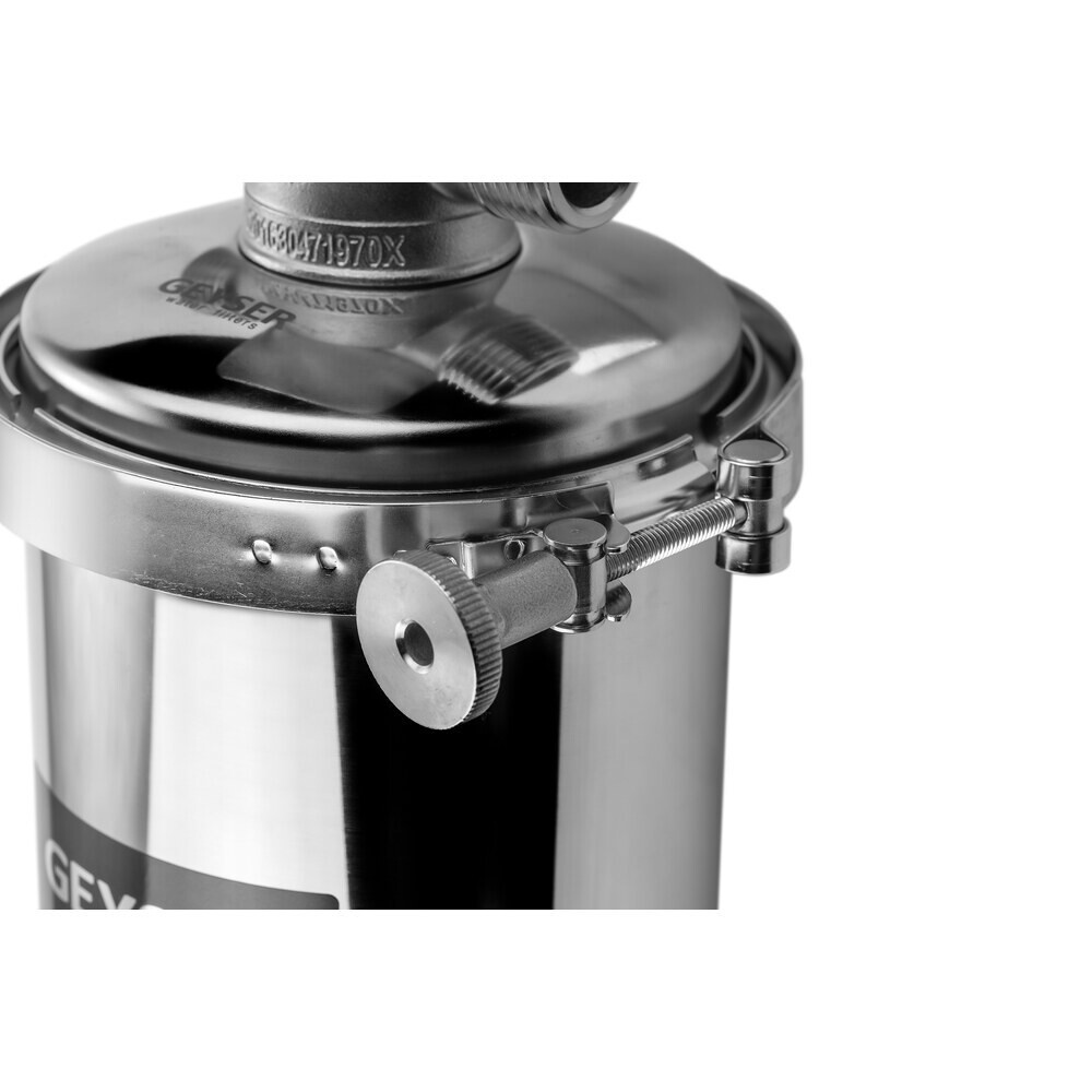 Корпус фильтра Гейзер Премьер для холодной и горячей воды нержавеющая сталь 10BB 1 НР(ш) х 1 НР(ш) серебро