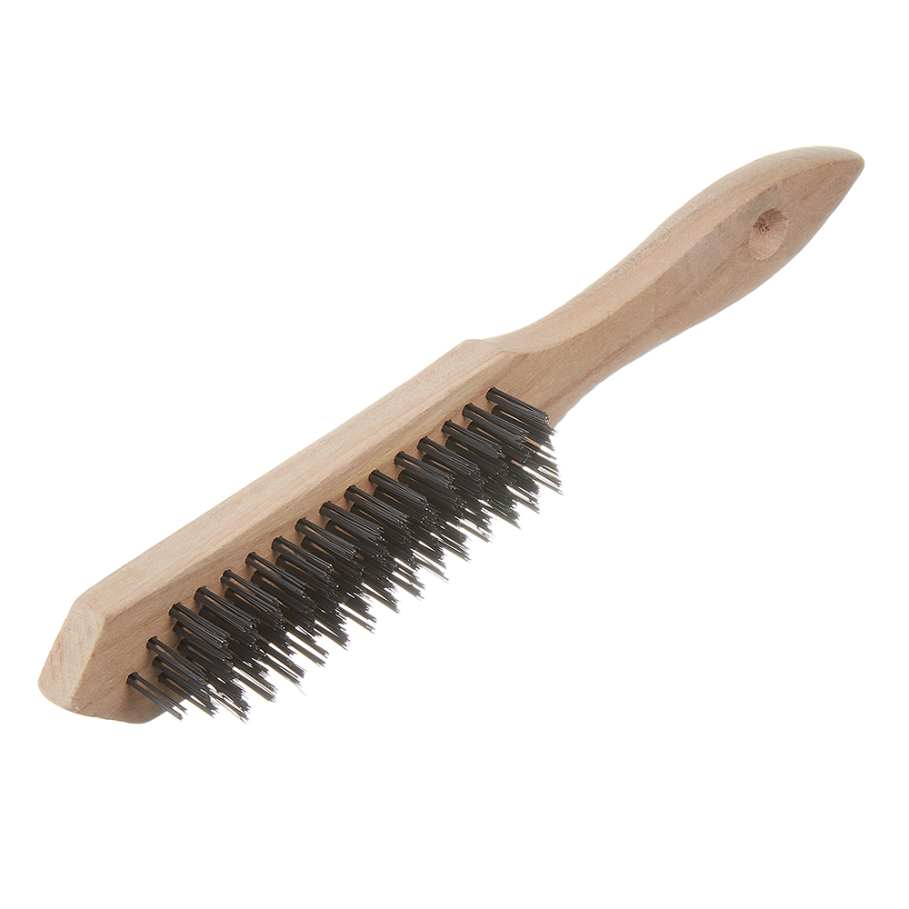 Щетка проволочная стальная предназначена для удаления ржавчины чистки метала. Пять рядов проволоки. Деревянная ручка.