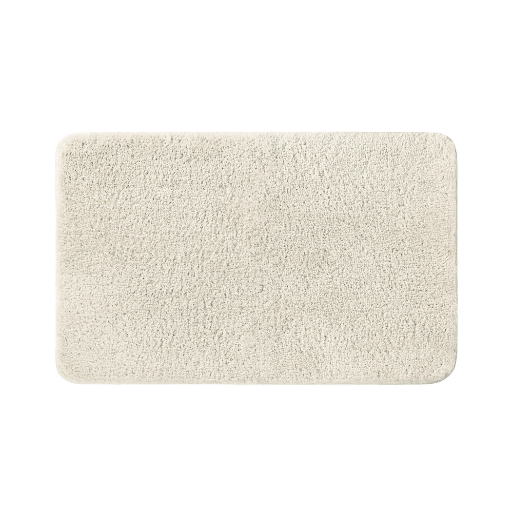 Мягкий коврик для ванной бежевого цвета с плотным, невысоким ворсом (2 см), приятный на ощупь. Ворс из микрофибры отлично держит форму, легко чистится и быстро сохнет.