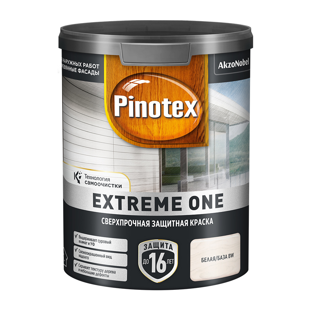 Краска фасадная по дереву Pinotex Extreme One база BW белая 0,9 л