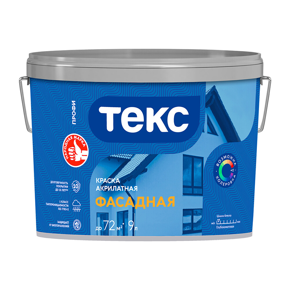 Краска фасадная Текс Профи акриловая база А белая 9 л