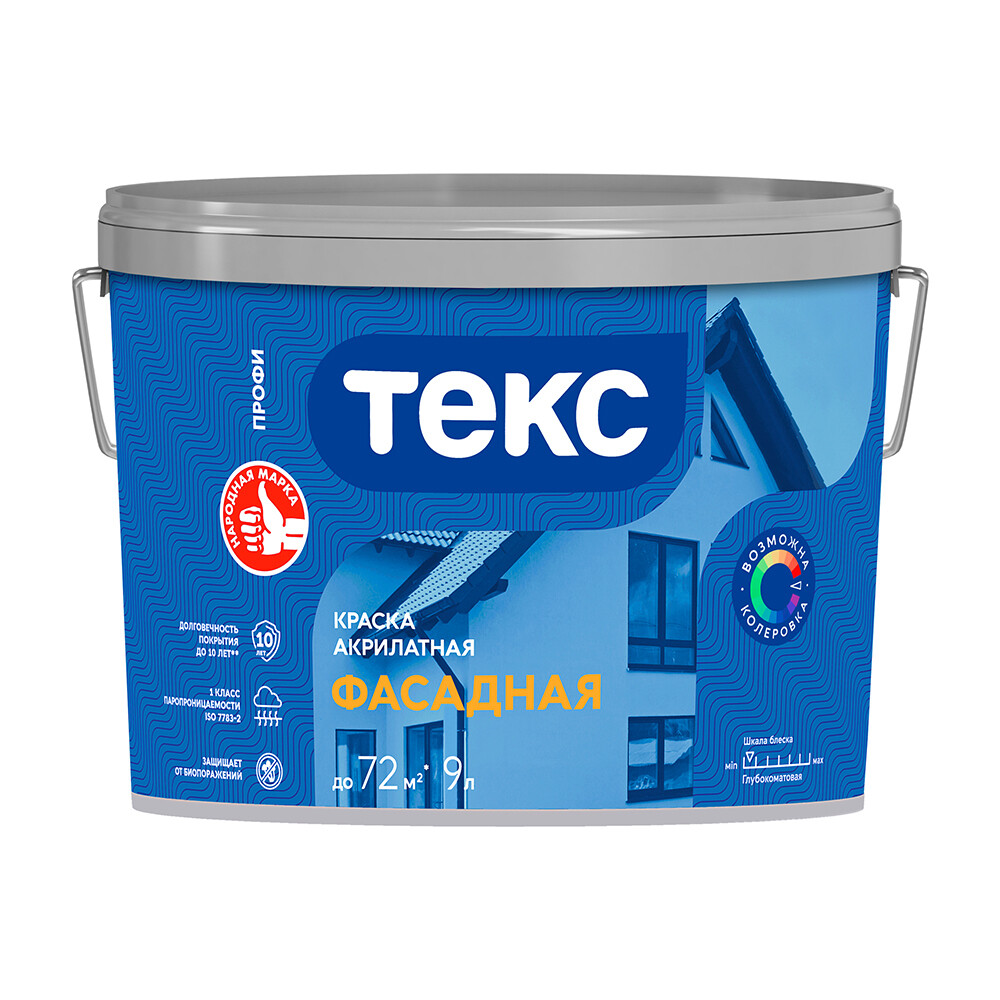 Краска фасадная Текс Профи акриловая база D бесцветная 9 л