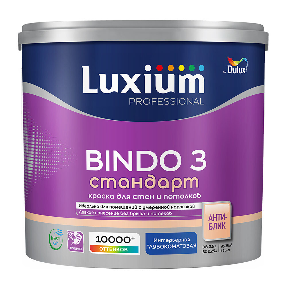 Краска интерьерная Dulux/Luxium Bindo 3 база BC бесцветная 2,25 л