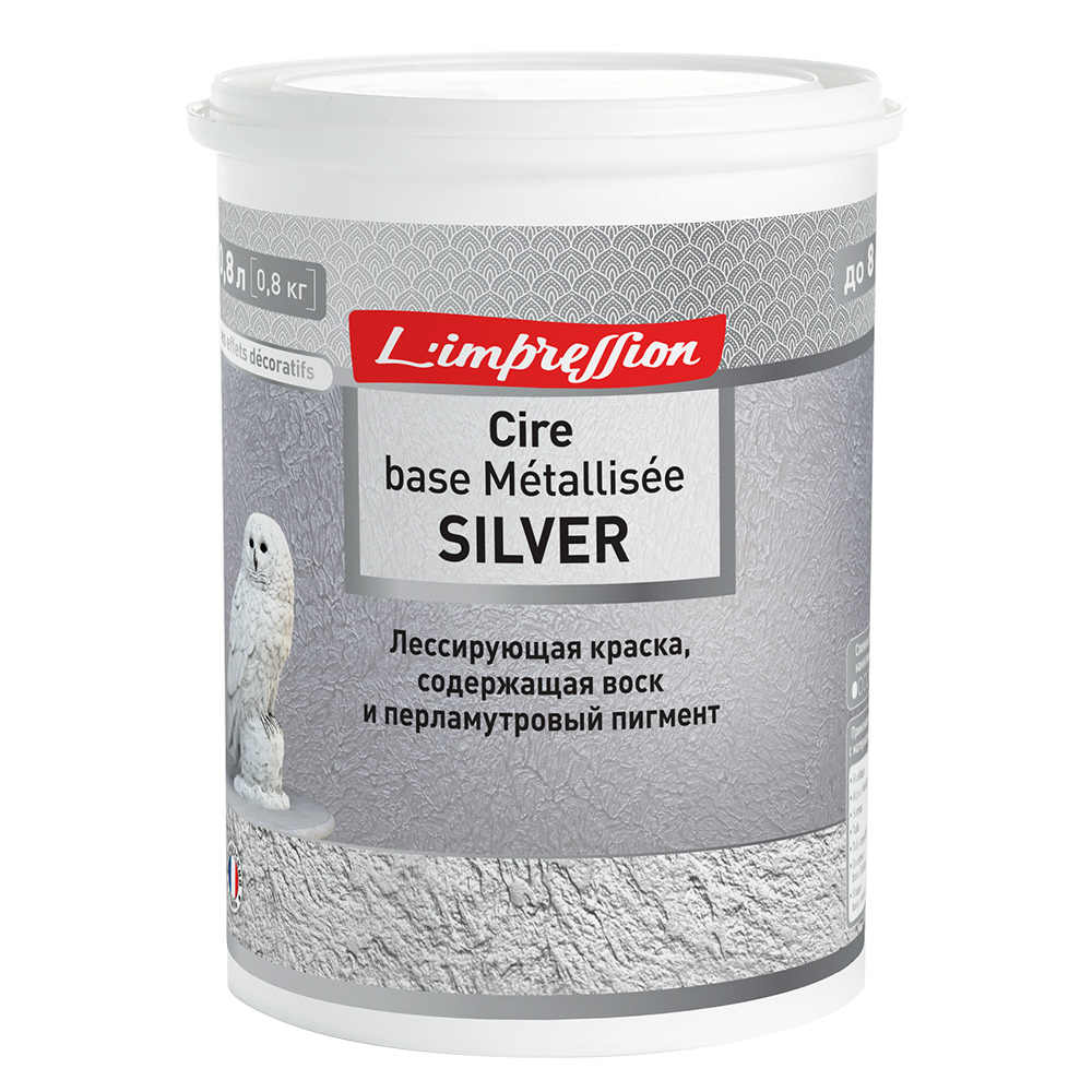 Краска лессирующая L’impression Cire base Metallisee Silver с эффектом патины серая 0,8 л