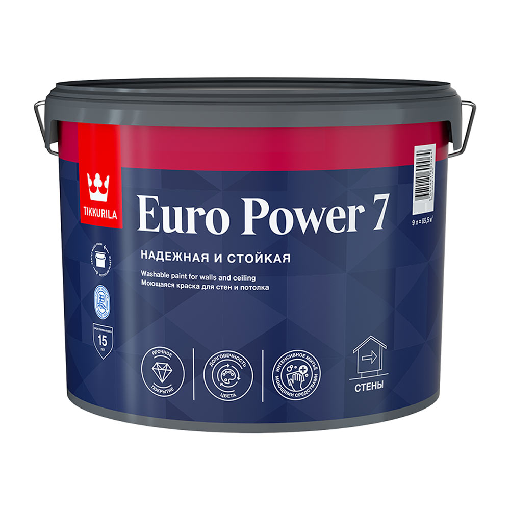 Краска моющаяся Tikkurila/Tikkivala Euro Power 7 база С бесцветная 9 л