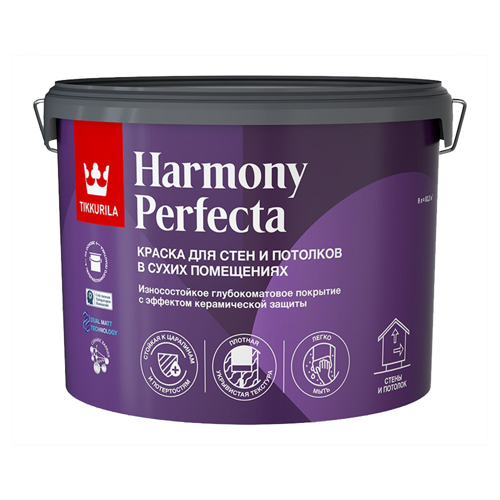 Краска моющаяся Tikkurila/Tikkivala Harmony Perfecta база С бесцветная 9 л