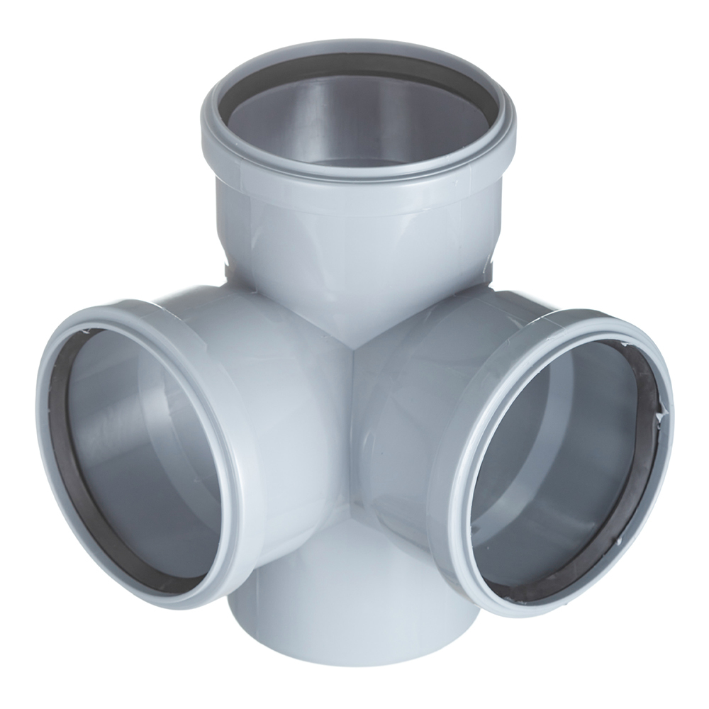 Крестовины двухплоскостные Valfex используется для монтажа двух ответвлений одного диаметра от основных канализационных стояков расположенных в двух плоскостях, транспортирующих стоки внутри жилых, административных, производственных зданий.