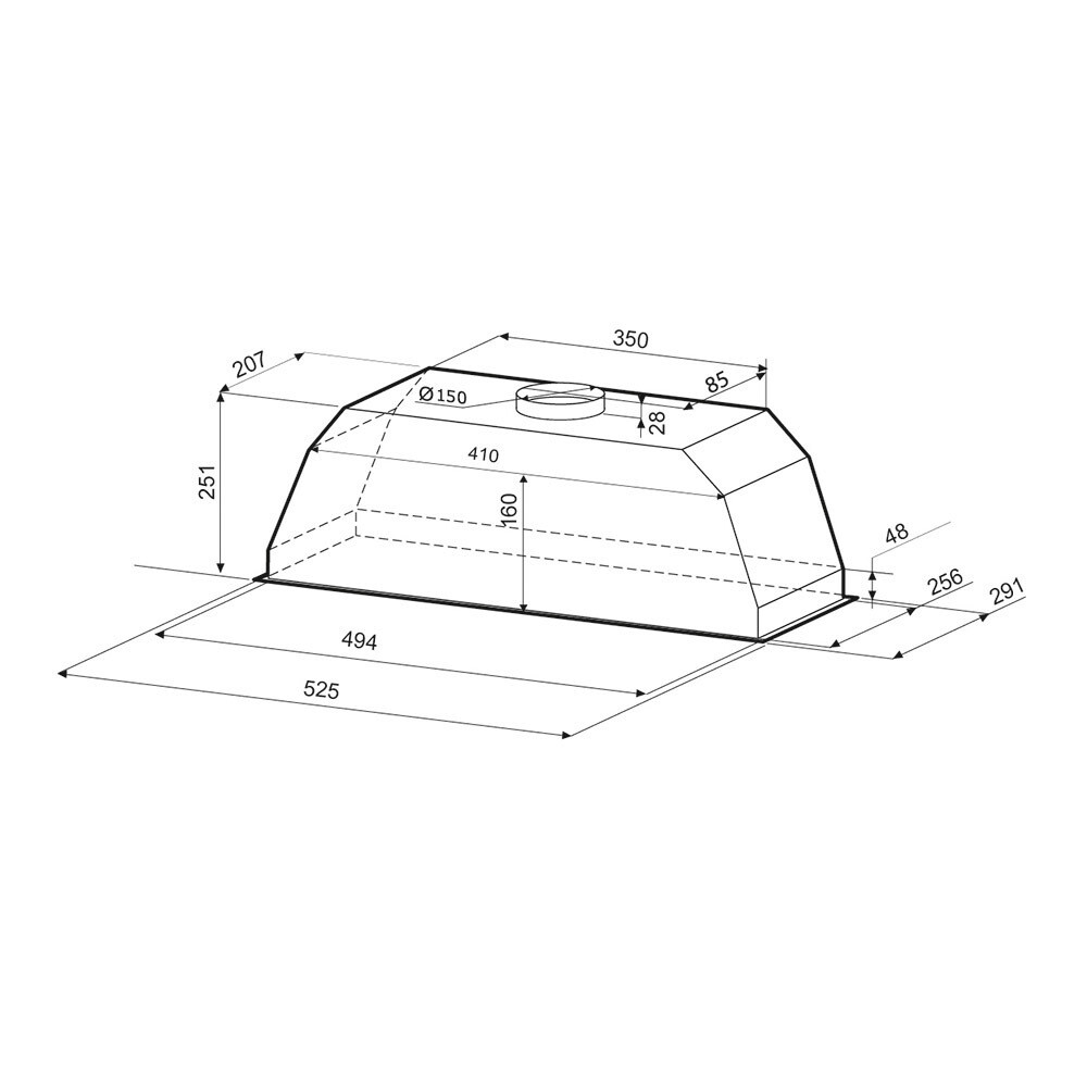 Полновстраиваемой модели Adel присущи минимализм и лаконичность. Вытяжка полностью встраивается в навесной шкаф, не нарушая целостности кухонного гарнитура.