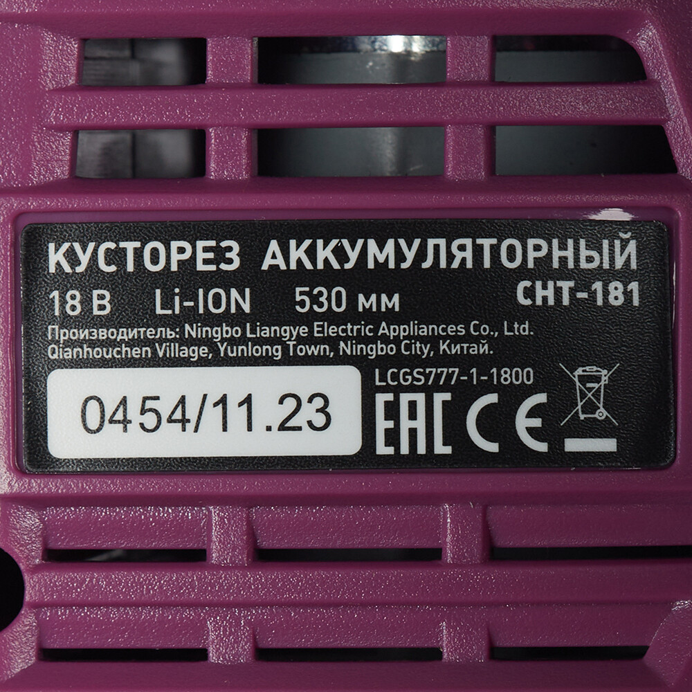 Кусторез для живой изгороди аккумуляторный КМ 18 В без АКБ и ЗУ (CHT-181)