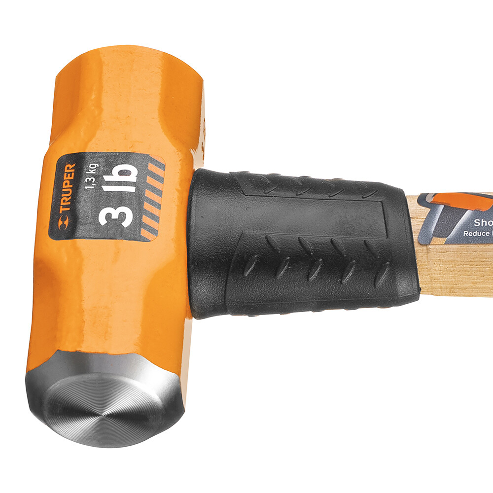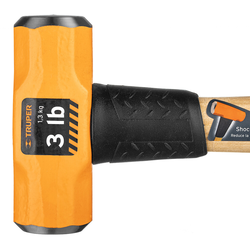 Деревянная рукоятка из дуба. Резиновый бампер для защиты ручки от промаха. Круглый боек – не оставляет следов на поверхности. Фрезерованный периметр бойка без острых углов – предотвращение сколов металла.