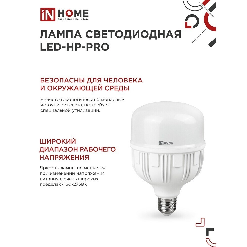 Мощная светодиодная лампа LED-HP-PRO создана для освещения производственных и бытовых помещений как эффективная замена газоразрядным ртутным лампам, и при этом не требуют специальных условий хранения и утилизации. Ровный световой поток без пульсаций даже в сетях с нестабильным напряжением. Яркость лампы не меняется при изменении напряжения питания в очень широких пределах. Является экологически безопасным источником света, не требует специальной утилизации.