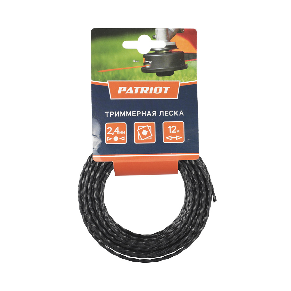 Леска для триммера Patriot витой квадрат 2,4 мм х 12 м черная (805205125)