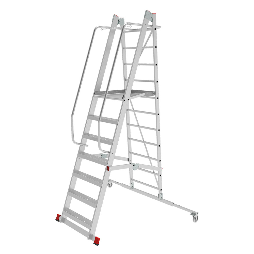 Предназначена для профессионального применения. Передвижная складная лестница-подмости с площадкой односторонняя предназначена для создания рабочего места на высоте 1,38–3,92 м.Идеальна для работы на складских стеллажах. Может применяться внутри и снаружи помещений.