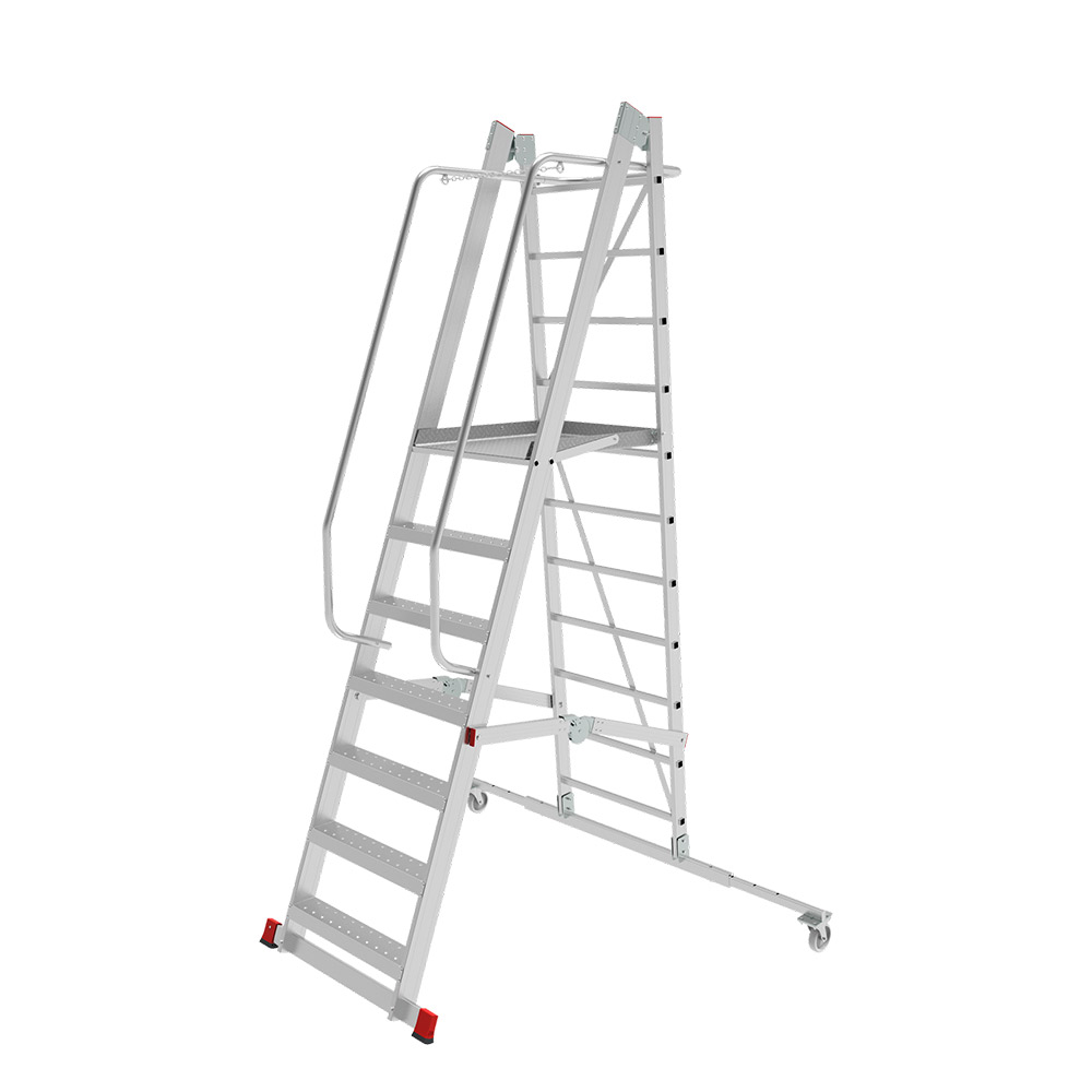 Предназначена для профессионального применения. Передвижная складная лестница-подмости с площадкой односторонняя предназначена для создания рабочего места на высоте 1,38–3,92 м.Идеальна для работы на складских стеллажах. Может применяться внутри и снаружи помещений.