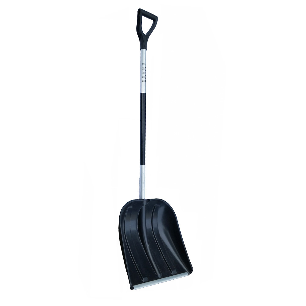 Ковш лопаты изготовлен из полипропилена специальной марки. Благодаря качественному материалу получено изделие высокой прочности. Кромка лопаты защищена специальным алюминиевым профилем с небольшим закруглением по краю. Это позволяет легче убирать снег, где территория не очень ровная. Поверхность лопатного ковша гладкая, за счет постоянного контроля за состоянием оснастки, что значительно снижает вероятность налипания снега. Габариты ковша лопаты и её небольшой вес делают её одной из самых востребованных снегоуборочных лопат и позволяют использовать её не только для уборки снега, но и для зерновых работ. Черенок изготовлен из алюминиевого профиля, что позволило значительно снизить вес лопаты в сборе. Лопатный черенок заканчивается эргономической и крепкой V-образной ручкой, изготовленной так же из полипропилена. Соединение ковша лопаты с черенком происходит с помощью заклёпки.