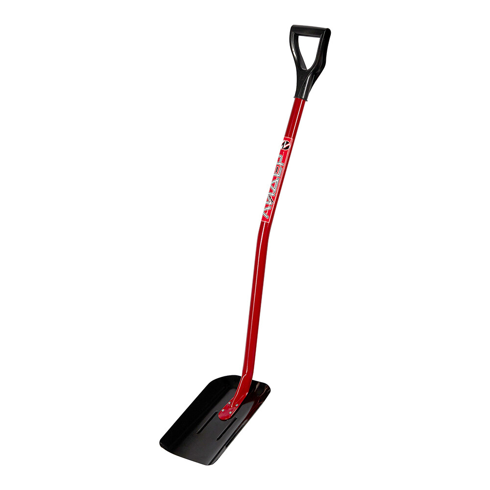 Стальная совковая лопата (полотно из стали со специальной термообработкой) с металлическим черенком и V образной ручкой. Эргономичный черенок и форма самой рабочей части снижают нагрузку на спину и делают её незаменимым помощником на дачном участке. Надёжное крепление рабочей части к черенку заклёпками позволяет служить изделию намного дольше. Наличие V-образной ручки на конце черенка делает удобным её хранение.