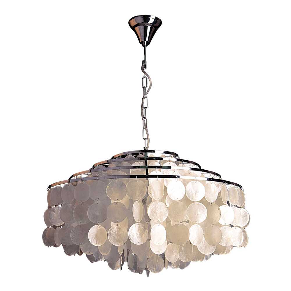 Предназначена для создания основного освещения в современных и классических интерьерах, подходит для различных типов помещений и рассчитана на площадь освещения 19 кв. м. Светильник оснащен патронами с цоколем Е27, которые рассчитаны на максимальную мощность ламп 60 Вт. Люстра украшена декоративными перламутровыми подвесами. В производстве светильника использовали высококачественный металл с надежным защитным покрытием.