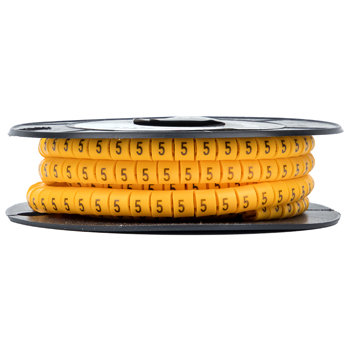 Маркеры кабельные (клипсы) EKF PROxima 3-4,2 мм цифра 5 желтые (500 шт.) (plc-KM-4-5)