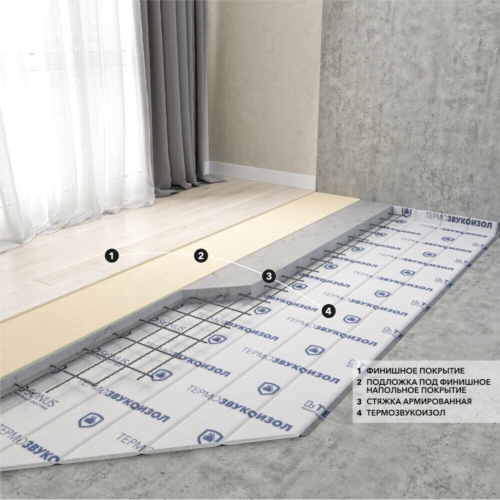 • В качестве звуко – виброизоляционного слоя для снижения индекса воздушного и ударного шума при устройстве полов методом «плавающей…