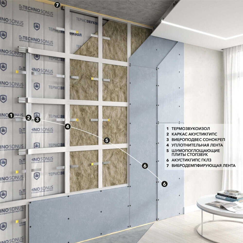 Универсальный и многофункциональный материал, обладающий вибродемпфирующими и шумопоглощающими свойствами. Применяется при звукоизоляции полов, стен, потолков и межэтажных перекрытий в жилых и нежилых помещениях. Маты состоят из плотно спрессованного стекловолокна высочайшего качества, запаянного в оболочку из спанбонда. Маты ТермоЗвукоИзол предназначены для использования в различных конструкциях шумоизоляции, таких как шумоизоляция полов под стяжкой, в системах шумоизоляции стен и потолков при возведении каркасно-обшивных конструкций. Снижают передачу вибрации, поглощают воздушный шум на средних и высоких частотах.
