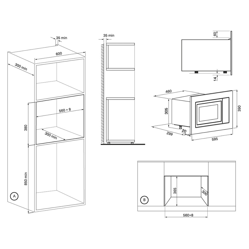 Микроволновая печь LAUNE 60 BL выполнена из черного стекла и отлично подойдет для встраивания не только в стандартный пенал, но и в навесной шкаф глубиной 300 мм.