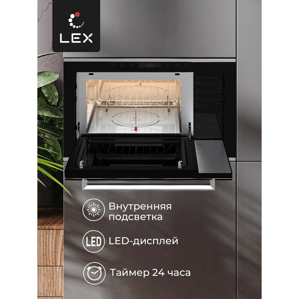 Микроволновая печь встраиваемая Lex Bimo 25.03 черная/нержавеющая сталь