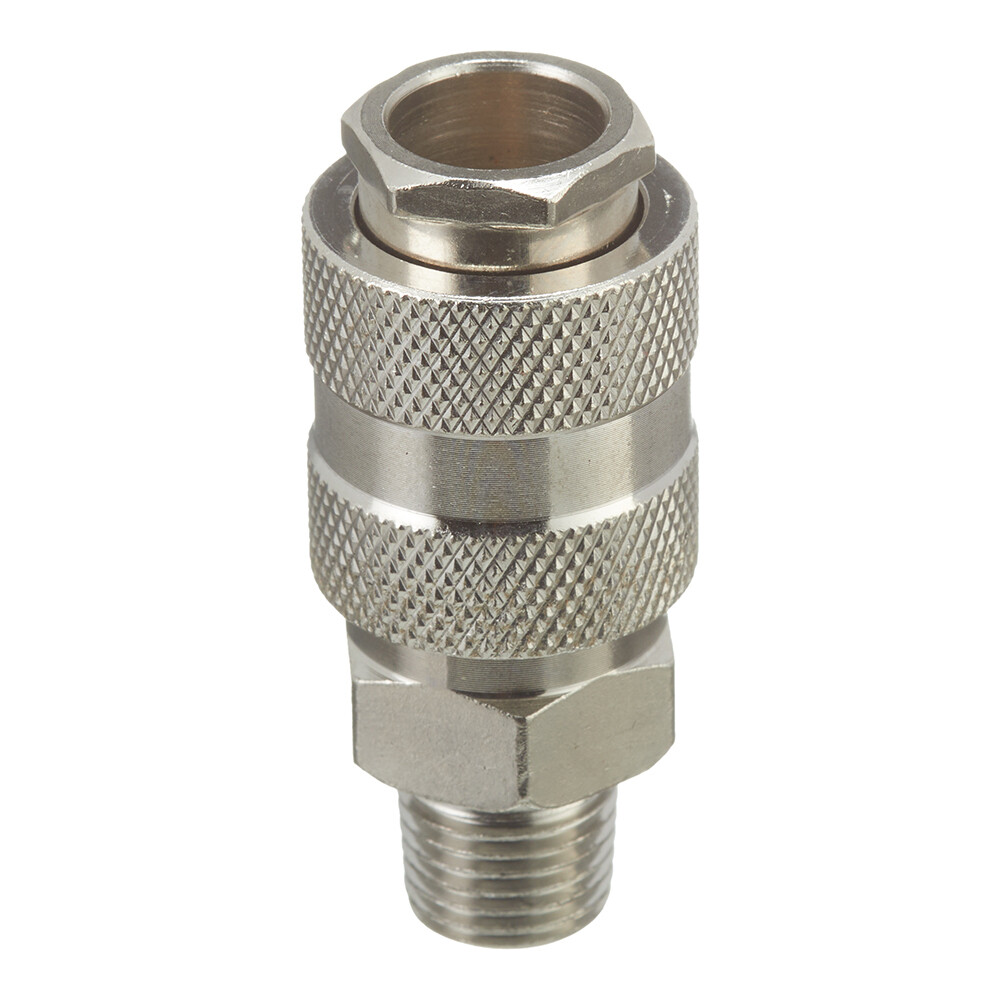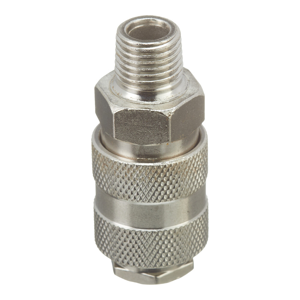 Переходник для соединения частей пневмомагистрали. Разъемы – наружная резьба 1/4″ и рапид папа.