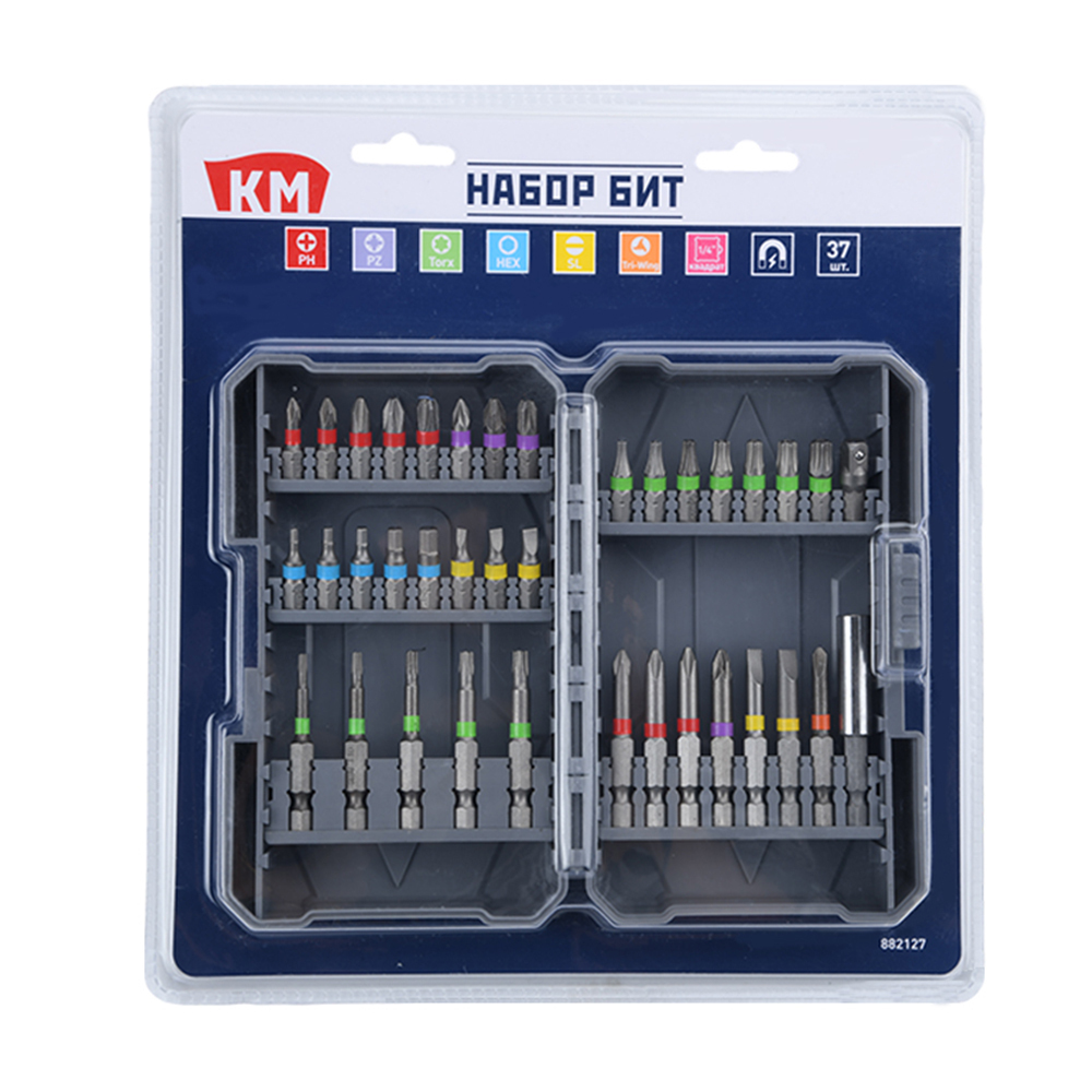 Набор бит КМ (882127) PH/PZ/SL/TORX/HEX/Tri-Wing 25/50 мм с магнитным держателем (37 шт.)