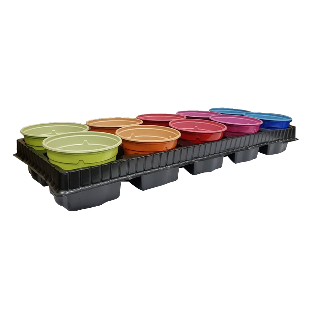 Яркий набор разноцветных пластиковых горшков для выращивания овощных и цветочных культур с подставкой. Набор для выращивания рассады овощных культур и цветов в домашних условиях. В состав входят 10 разноцветных пластиковых горшочков и подставка. Размер и вытянутая форма подставки позволяют разместить весь набор на подоконнике в доме и не занимать лишнее пространство.