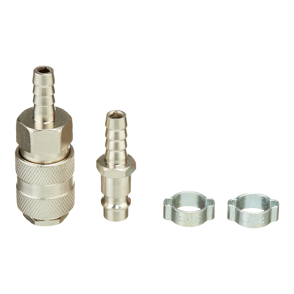 Набор Fubag 180421 В используется совместно с компрессорным оборудованием для соединения шланга с пневмоинструментом. Крепится к инструменту с помощью соединения рапид, а к шлангу — елочкой.