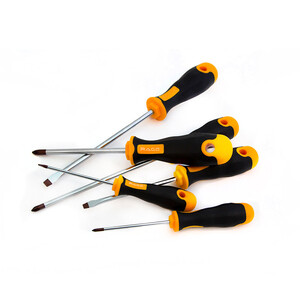 Предназначен для бытового и профессионального использования. Стержень изготовлен из прочной стали S2, твердость 56-58 HRC. Серия оснащена магнитным наконечником, что позволяет комфортно работать с мелким крепежом и деталями, это особенно удобно при сборке бытовой техники. Набор отверток имеет эргономическую нескользящую трехкомпонентную рукоятку.