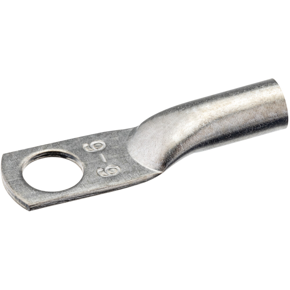 Наконечники этого типа применяются для установки электроприборов, подключения вводно-распределительных устройств и для заземления. Подходит для медных проводов сечением 6 мм2. Для работы с наконечниками данного типа применяется специальный инструмент — кримпер силовой для обжима наконечников и гильз (арт.26123 0).