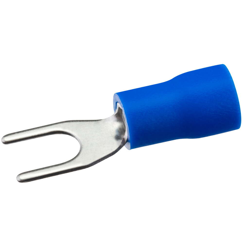 Вилочный изолированный наконечник НВИ 2-4 предназначен для оконцевания опрессовкой многопроволочных гибких медных проводов и быстроразъемных соединений.