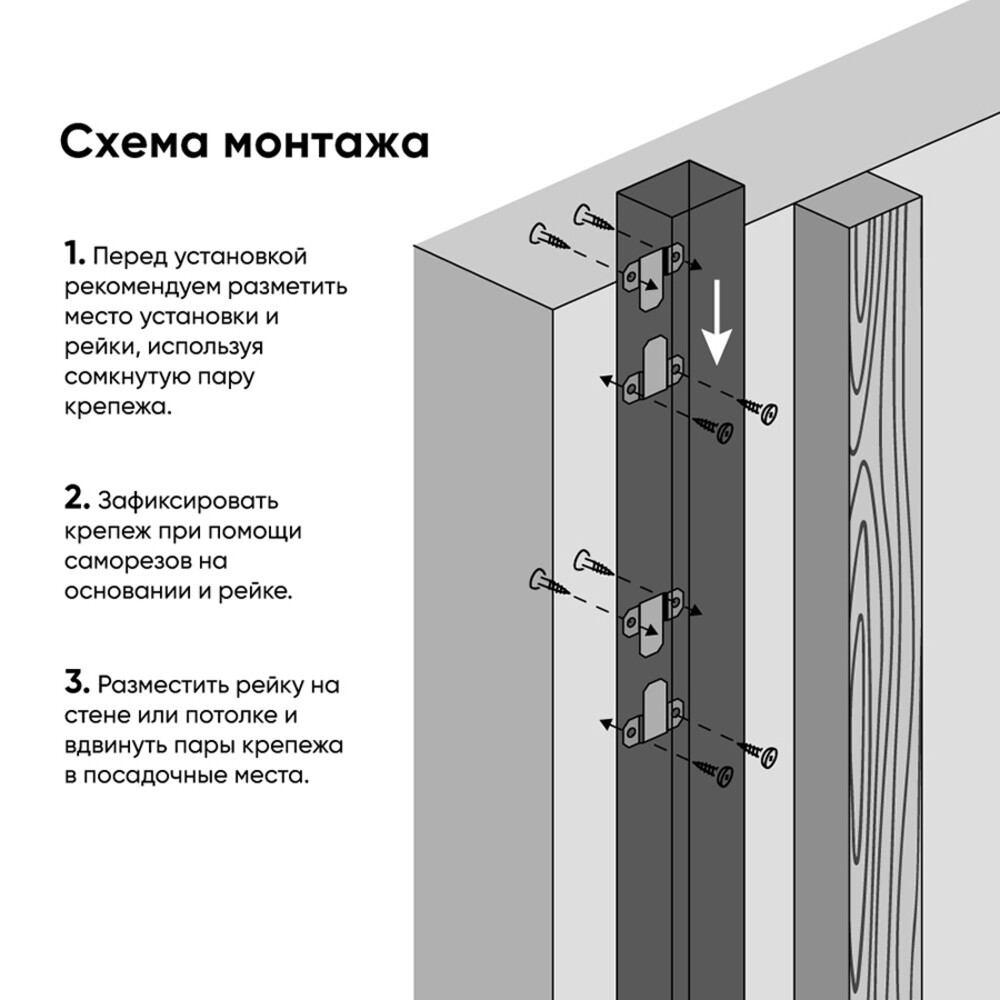 Предназначен для монтажа фасадных досок и декоративных реек на стены и потолок. Обеспечивает надежный невидимый монтаж, а формируемый зазор в 4 мм создает ощущение парящей доски и обеспечивает возможность монтажа светодиодной подсветки. Крепеж выполнен из оцинкованной стали 2 мм, обеспечивающей превосходную надежность фиксации. Фаски на краях сопрягаемых элементов обеспечивают комфортный монтаж в сочетании с надежной фиксацией в закрытом положении после установки. При наличии фрезерованного паза на тыльной стороне доски, может быть обеспечено плотное прилегание к стене.