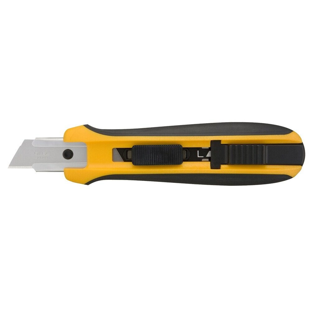 Универсальный нож OLFA UTC-1 подходит для любых работ. Удобен в использовании и очень точен за счет усиленной фиберглассом рукоятки с резиновыми вставками по периметру. Выдвижной нож имеет пять положений лезвия для быстрой регулировки длины. Фиксатор с автоматической блокировкой надежно удерживает лезвие во время резки. Очистка выполняется легко, благодаря стойкому к ацетону корпусу. Поставляется с трапециевидным лезвием из углеродистой стали.