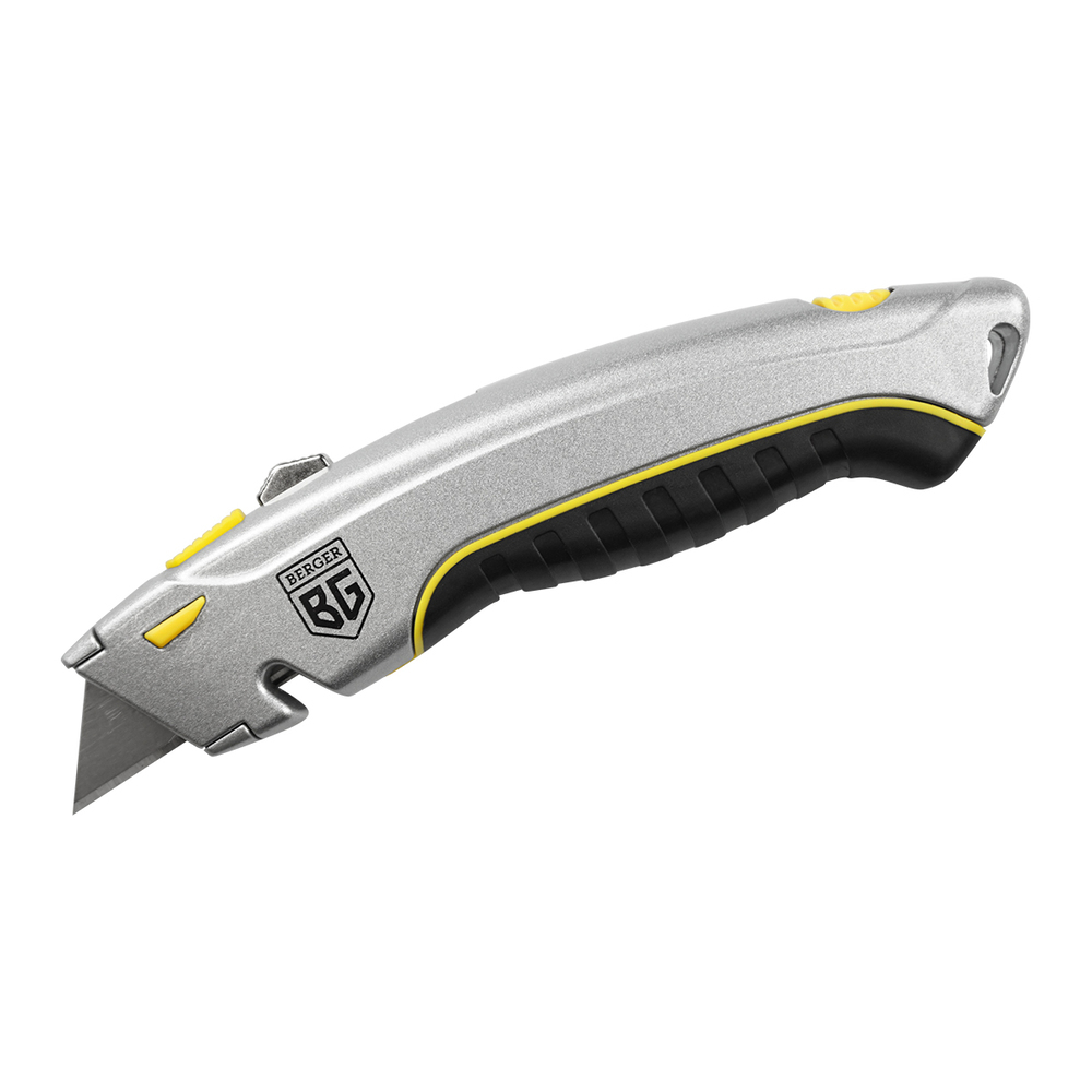 Нож строительный Berger 19 мм с трапециевидным выдвижным лезвием металлический корпус