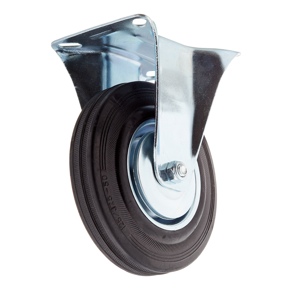 Опора колесная неповоротная сталь/резина на площадке 125 мм черная (1 шт.)