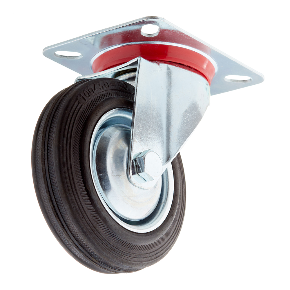 Опора колесная поворотная сталь/резина на площадке 100 мм черная (1 шт.)