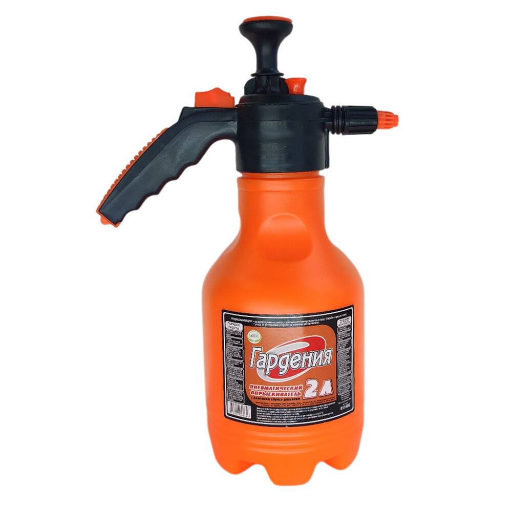 Опрыскиватель «Гардения» с клапаном сброса давления предназначен для дезинфекционных работ, распыления химикатов в саду (борьба с вредителями), ухода за растениями (обработка жидкими удобрениями). Излишнее давление, создаваемое в колбе, сбрасывается через специальный клапан. Объем заливаемой жидкости — 2 л.