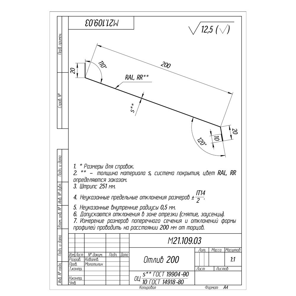 Отлив 200х2000 мм графитовый серый RAL 7024