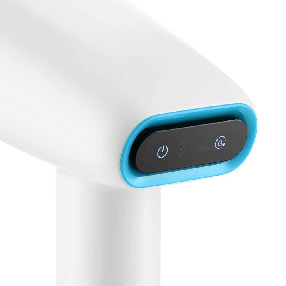 В режиме сухой глажки вы можете гладить вещи рабочей поверхностью прибора как обычным утюгом. Температура поверхности составляет 100-120 °C, а температура пара – 98-140 °C. При нажатии на кнопку «Вкл/Выкл» резервуар подсвечивается.