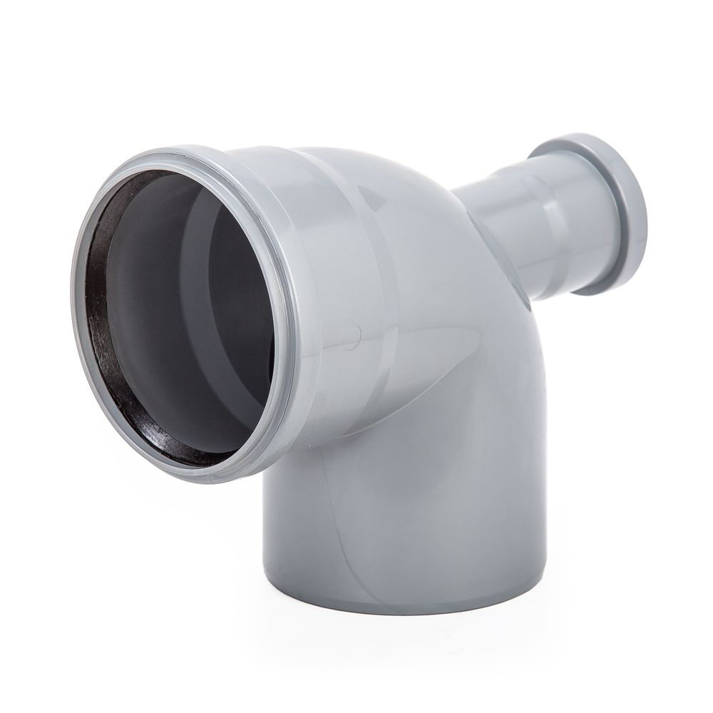 Предназначен для поворота канализационной трубы на необходимый угол с дополнительным выходом.
