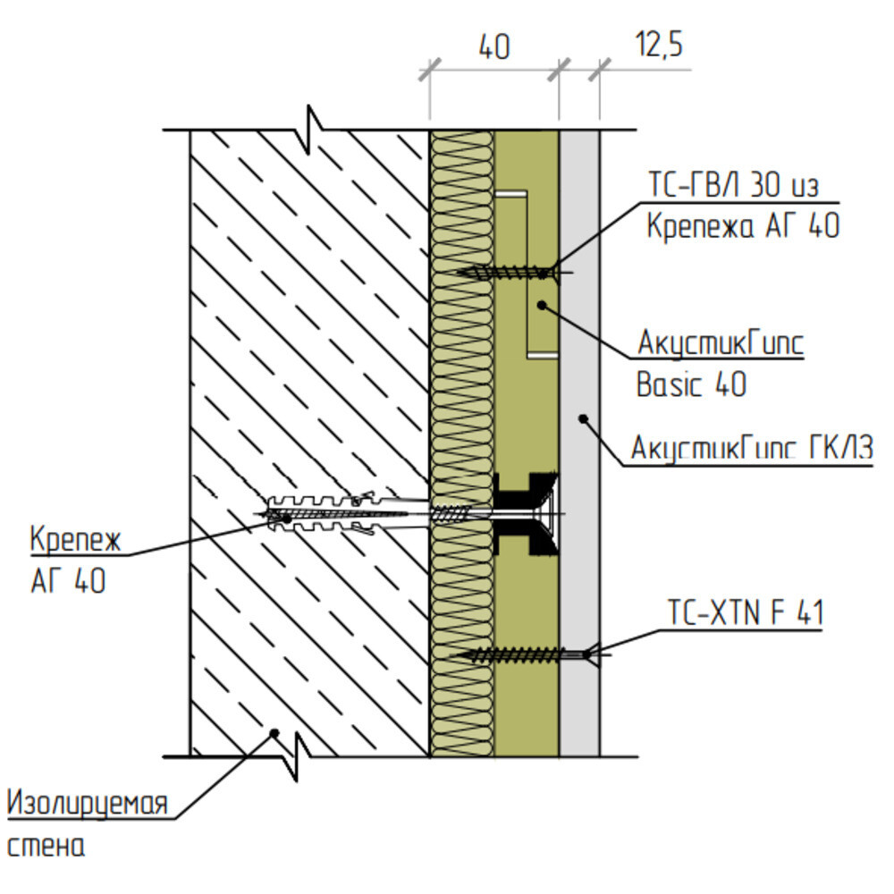 Панель звукоизоляционная AcousticGyps Basic 40х600х1200 мм с комплектом крепежа