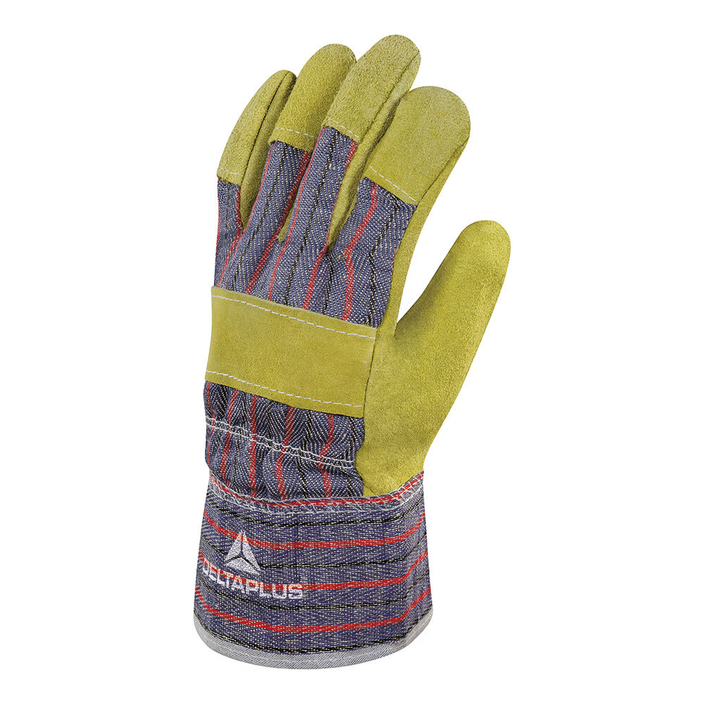 Перчатки х/б 5 нитей спилковые Delta Plus DC103 бежево-синие 10 (XL)