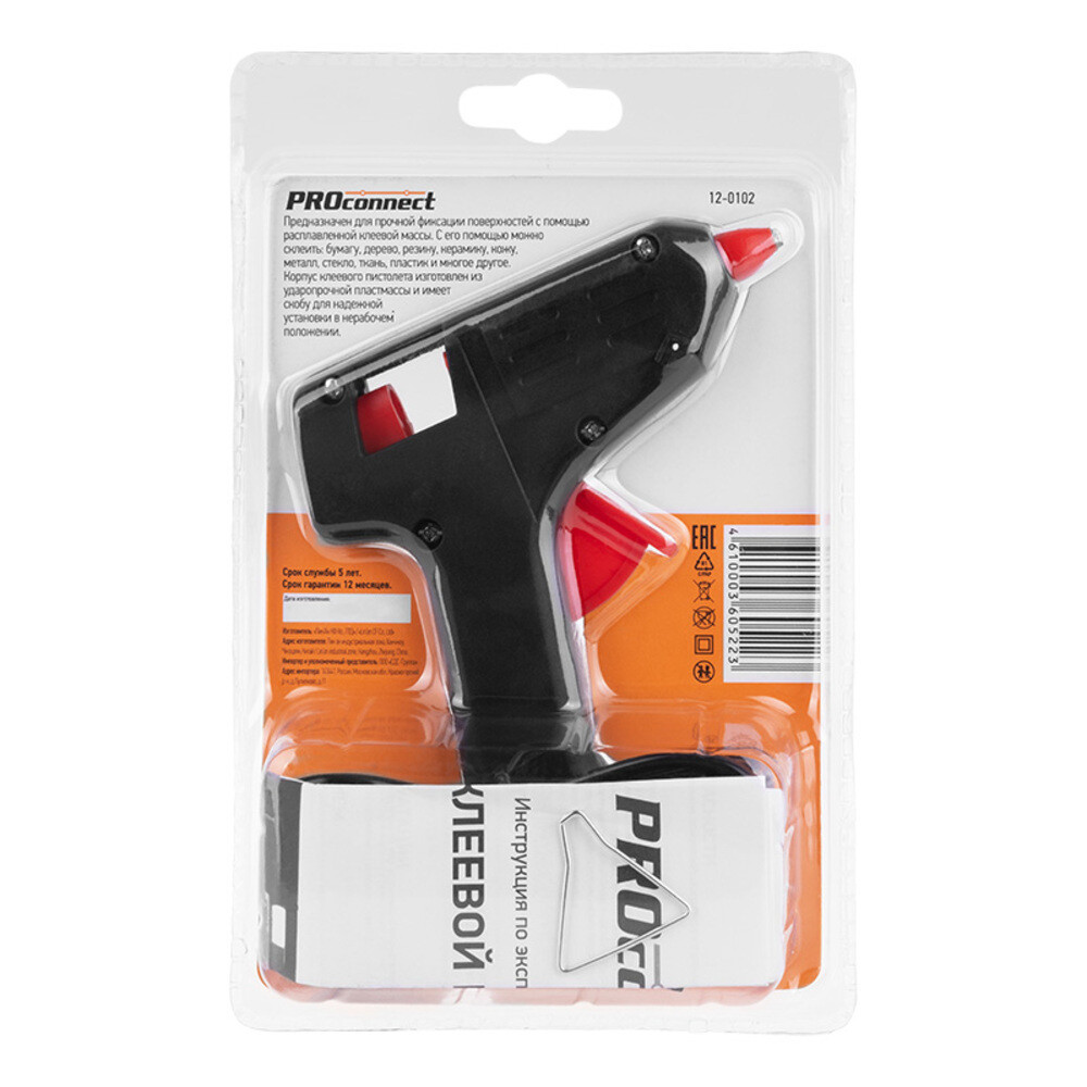 Пистолет клеевой PROconnect (15 Вт, Ø7 мм) предназначен для прочной фиксации поверхностей с помощью расплавленной клеевой массы.