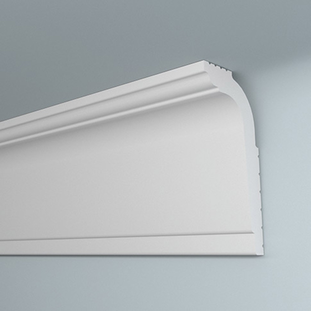 Предназначен для внутренней декоративной отделки жилых помещений. Классическая модель плинтуса может использоваться как для обычного, так и для натяжного потолка, благодаря увеличенной монтажной области по стене, а также форме клеевых бороздок, позволяющих монтировать плинтус на одну клеевую поверхность. Имеет гладкую матовую поверхность. Оптимальная плотность потолочного плинтуса обеспечивает однородность структуры, а незначительный вес создает дополнительные удобства при монтаже. Не требует обязательной окраски. Крепится к стене и потолку при помощи шпаклевки или жидких гвоздей.